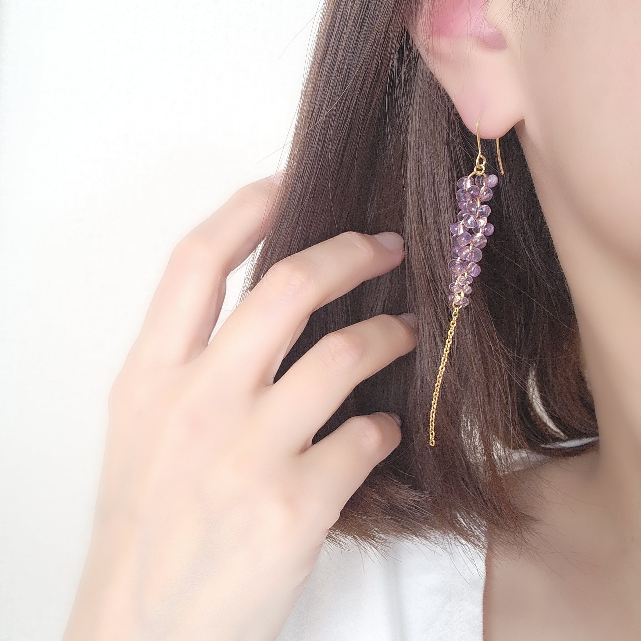 パープル『ロングチェーン耳飾り』