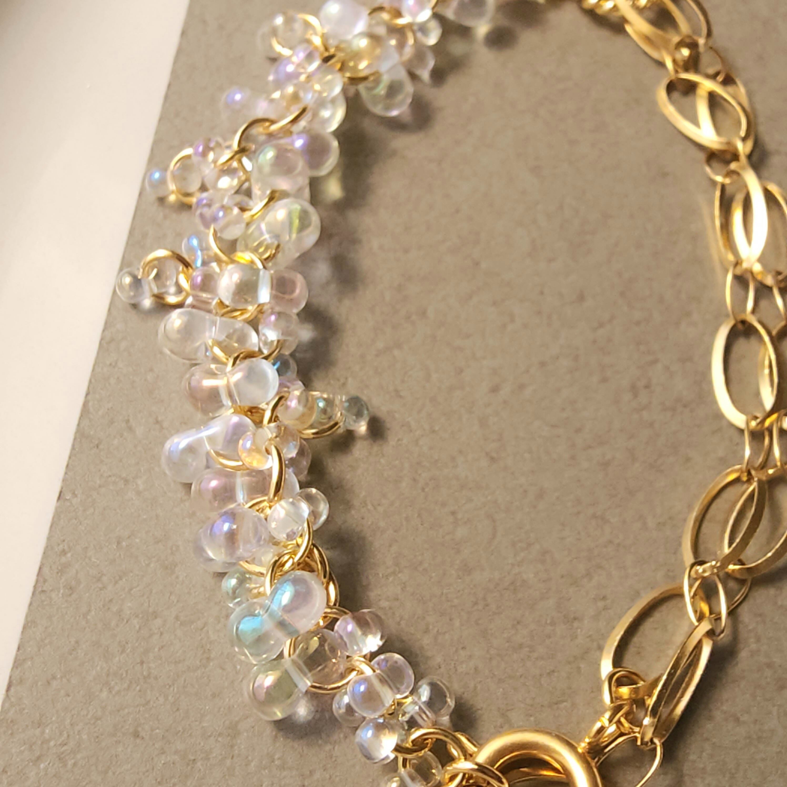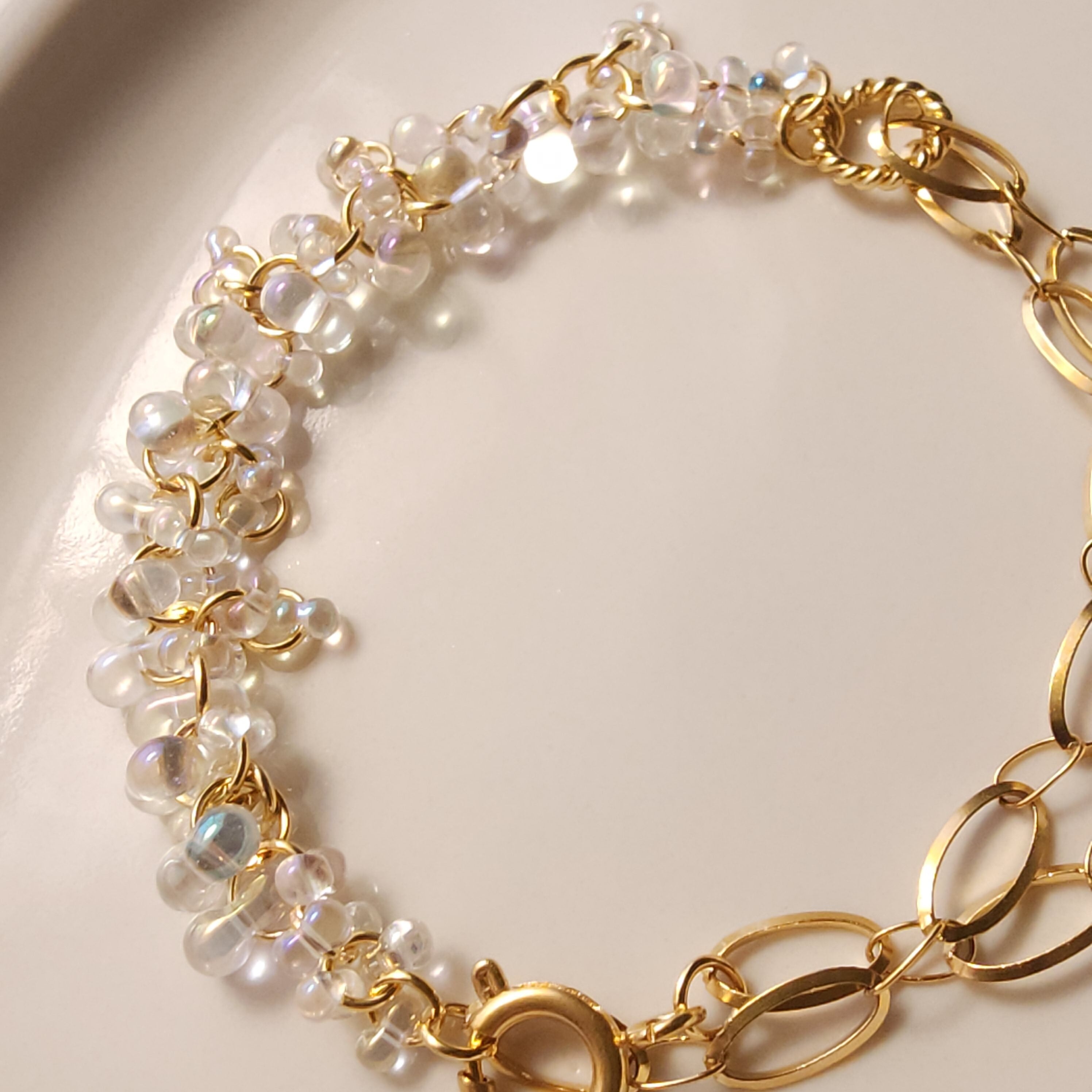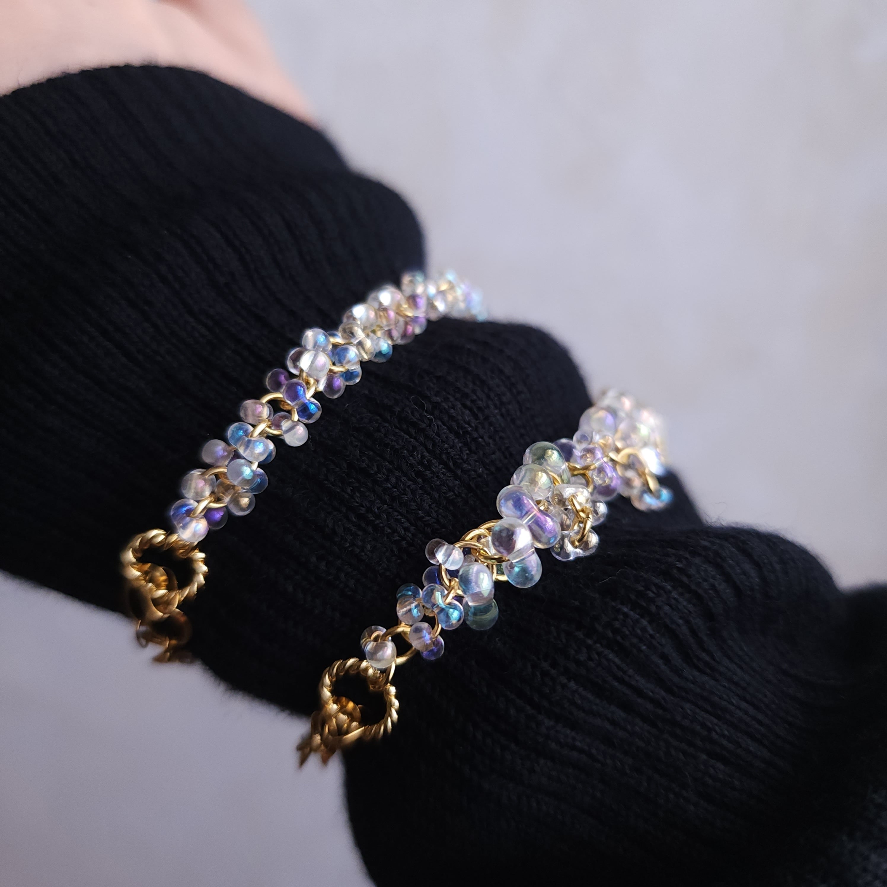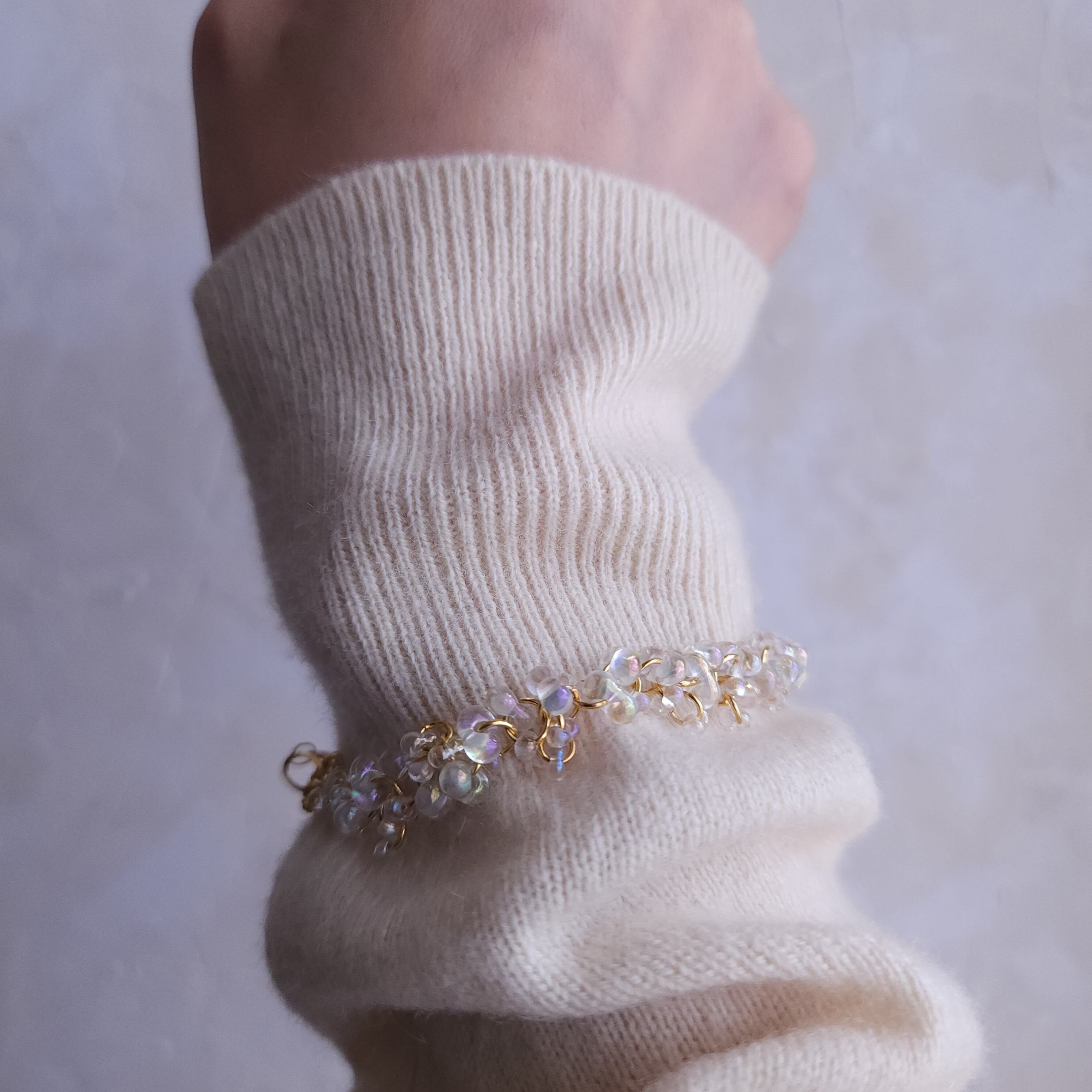 大ビーズ小ビーズをこだわりのバランスで繋ぎ、