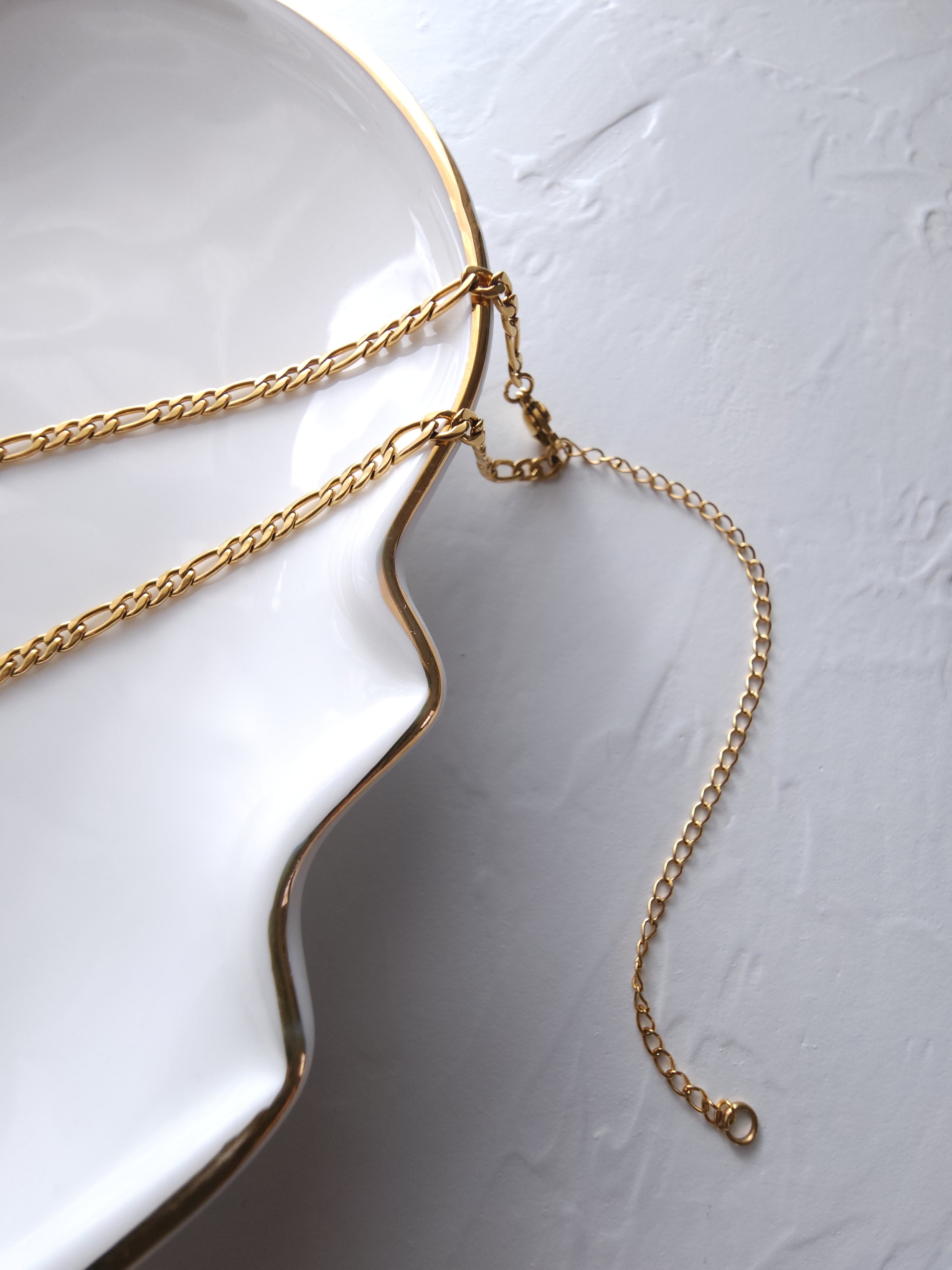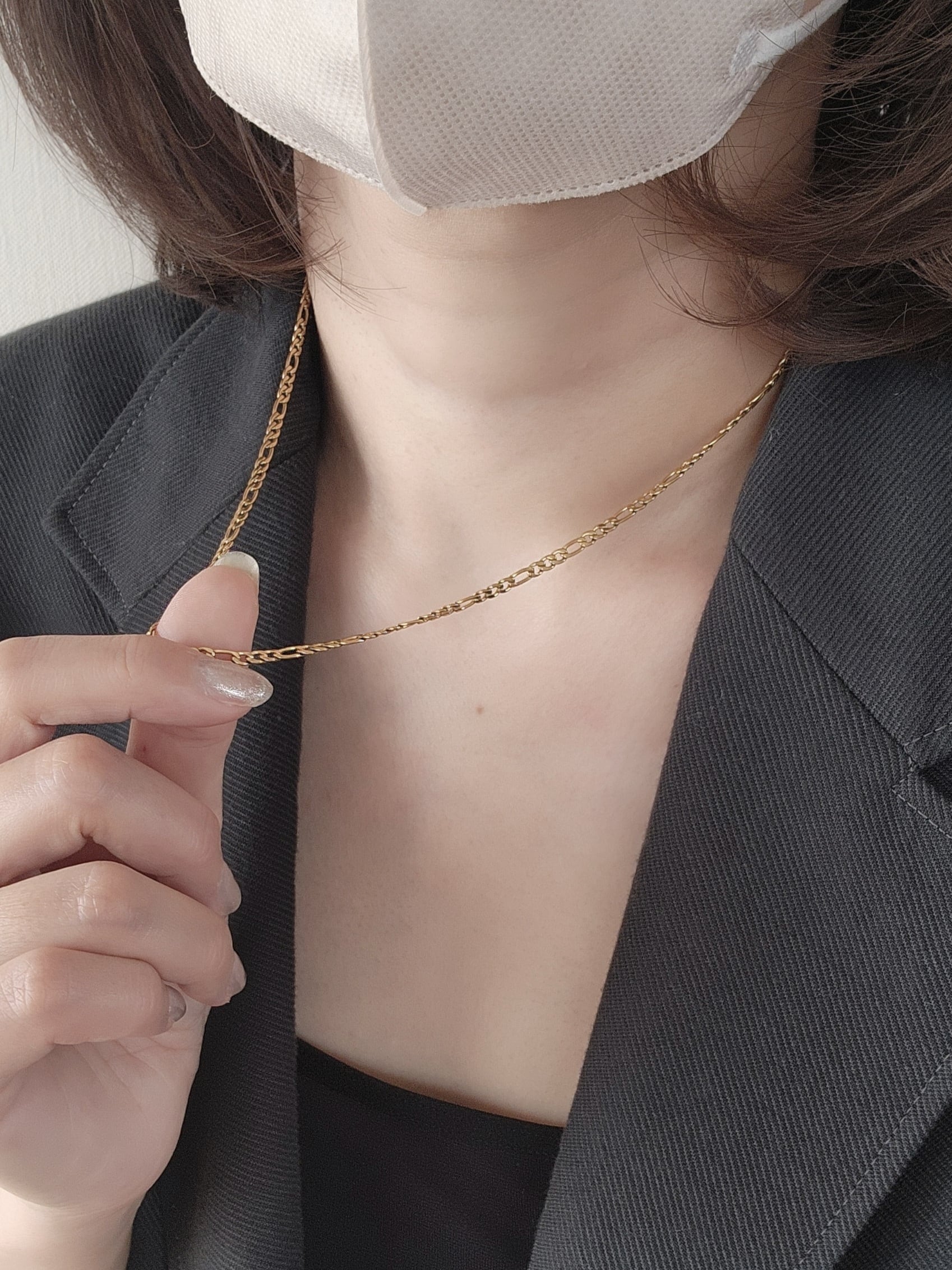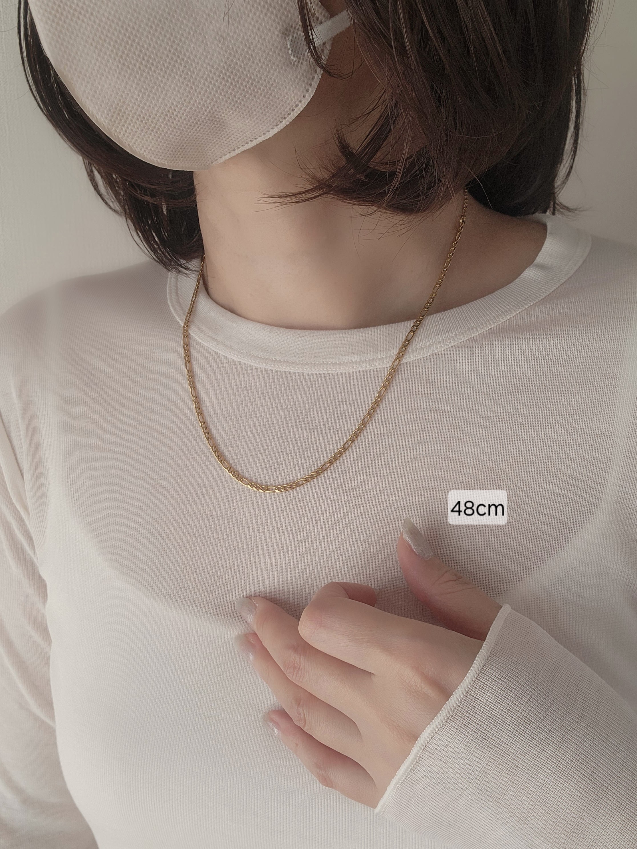 繊細なフィガロチェーンが美しく、