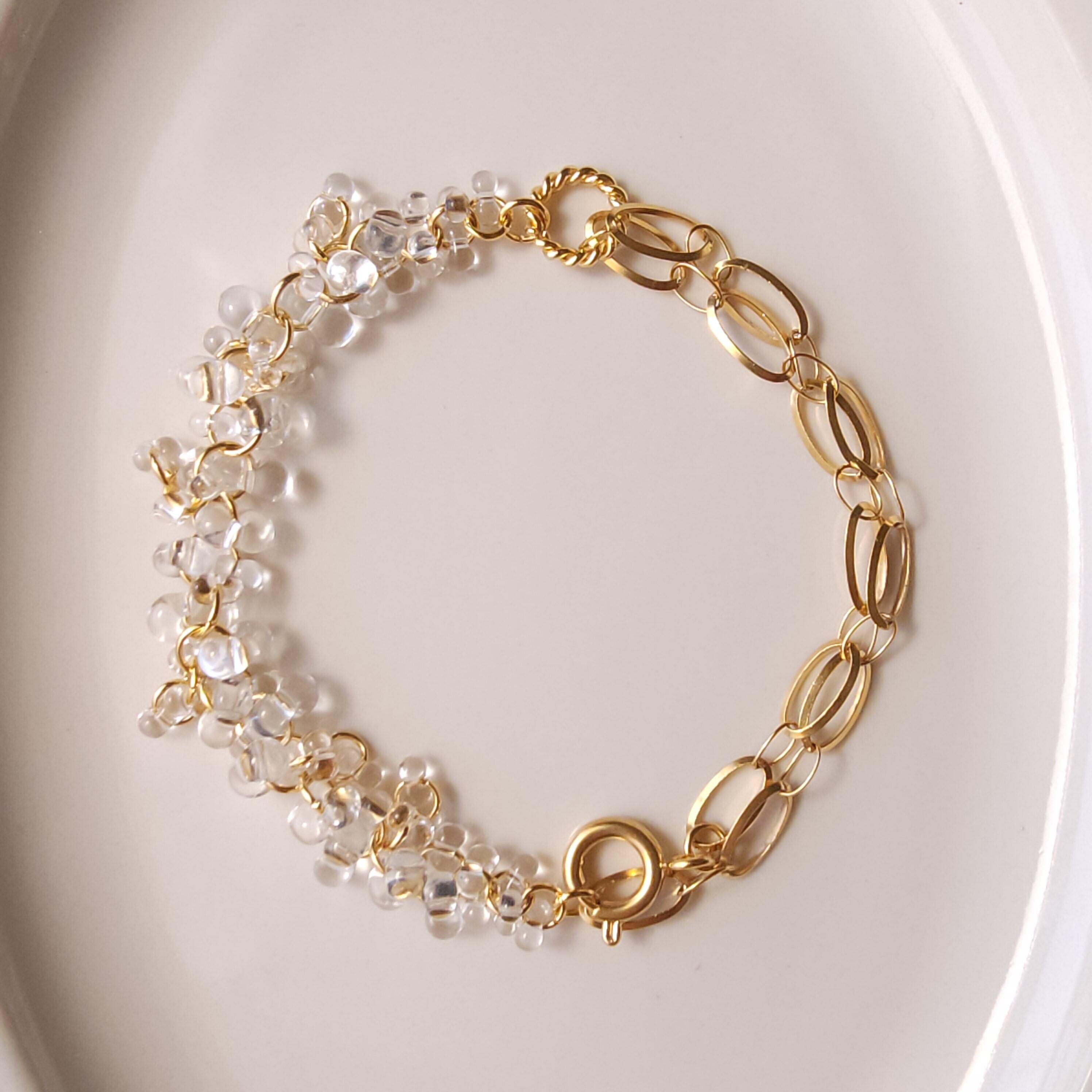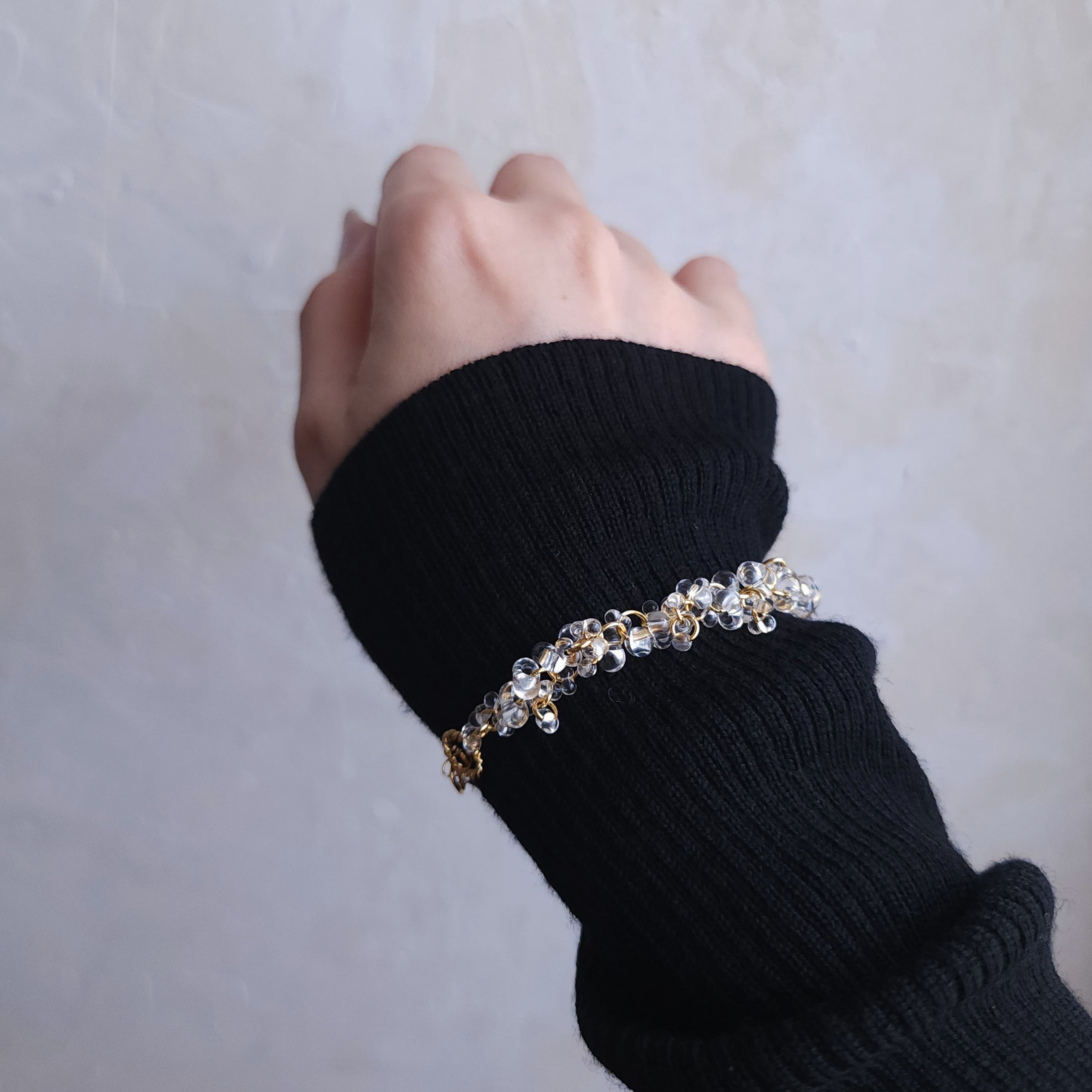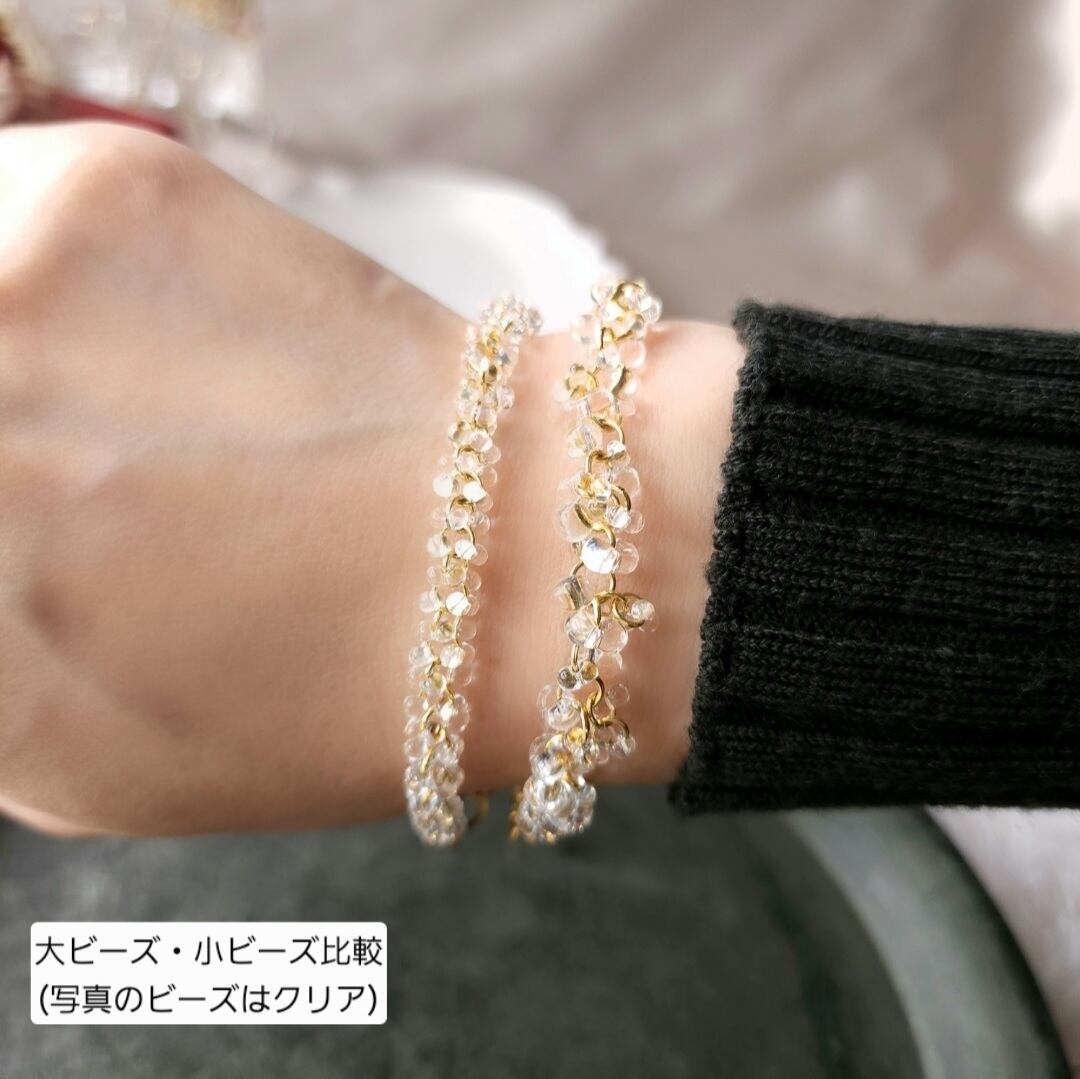 大ビーズ小ビーズをこだわりのバランスで繋ぎ、